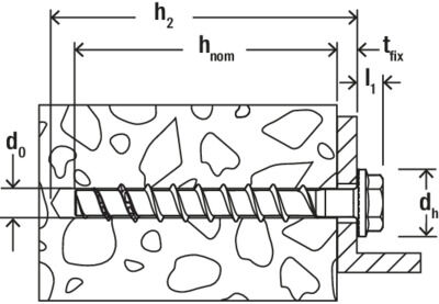 Nominelle Einbindetiefe / Anbauteildicke (hnom1 / tfix) | 55 / 25 mm |