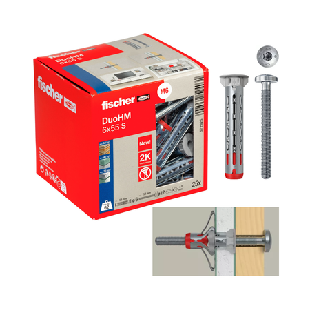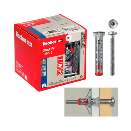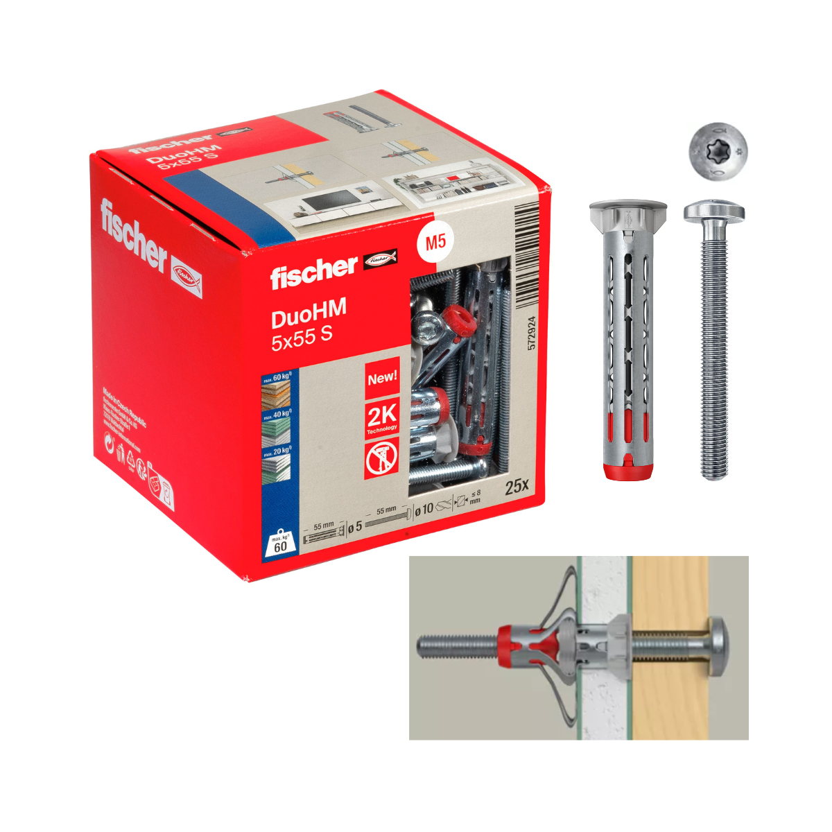 fischer Hohlraumdübel DuoHM S PH – verschiedene Größen mit TX-Kopf, inkl. metrischer Panheadschraube – für sichere Befestigungen von TV-Halterungen, Leuchten, Wandregalen uvm. in Plattenbaustoffen