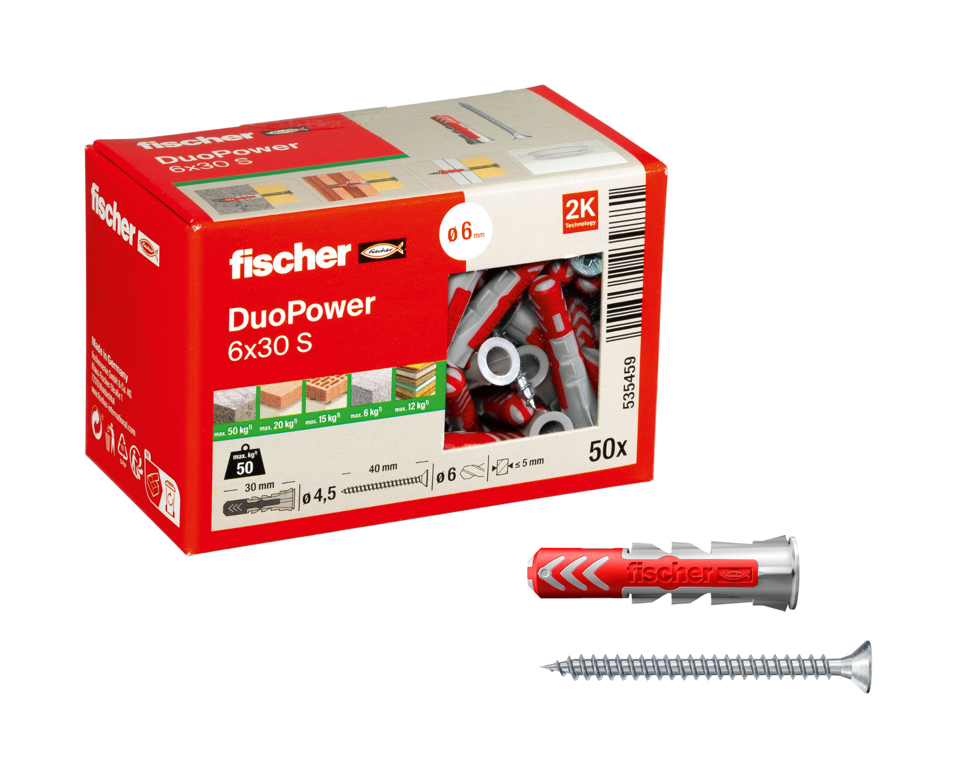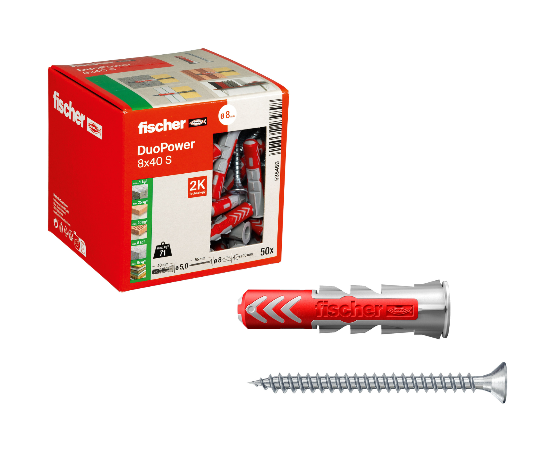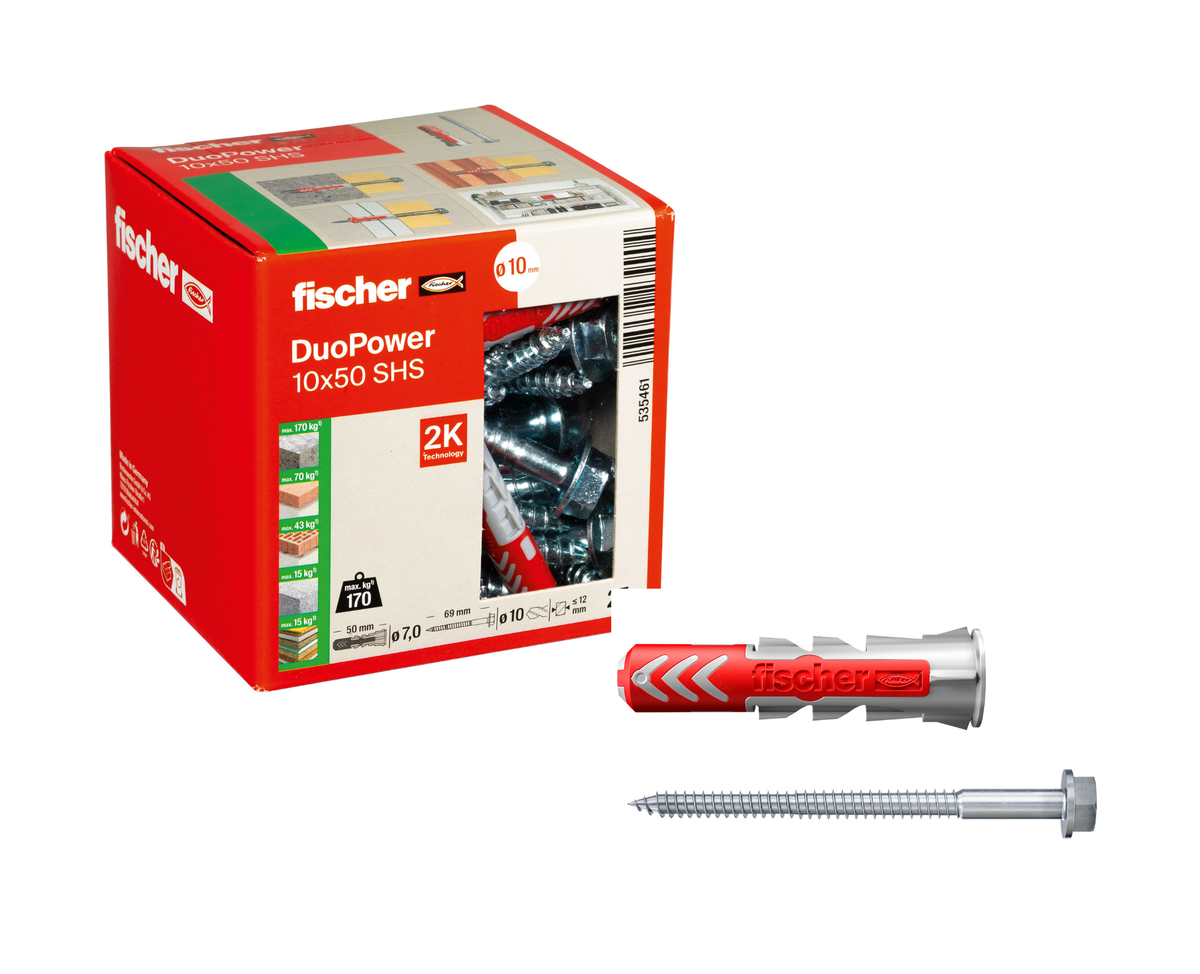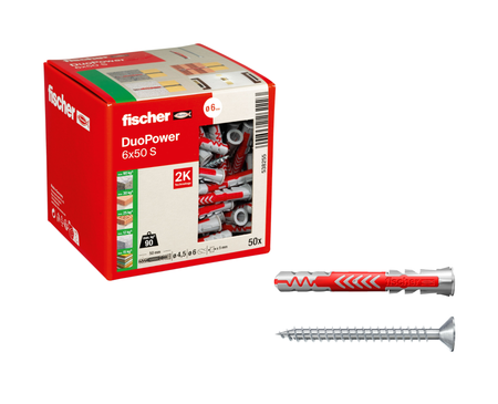 fischer DuoPower S | Universaldübel mit passender Schraube je nach Größe (Senkkopf oder Sicherheitsschraube) | 2-Komponenten-Kunststoffdübel für Befestigungen in Beton, Ziegel, Naturstein, Gipskarton & mehr | alle Größen wählbar
