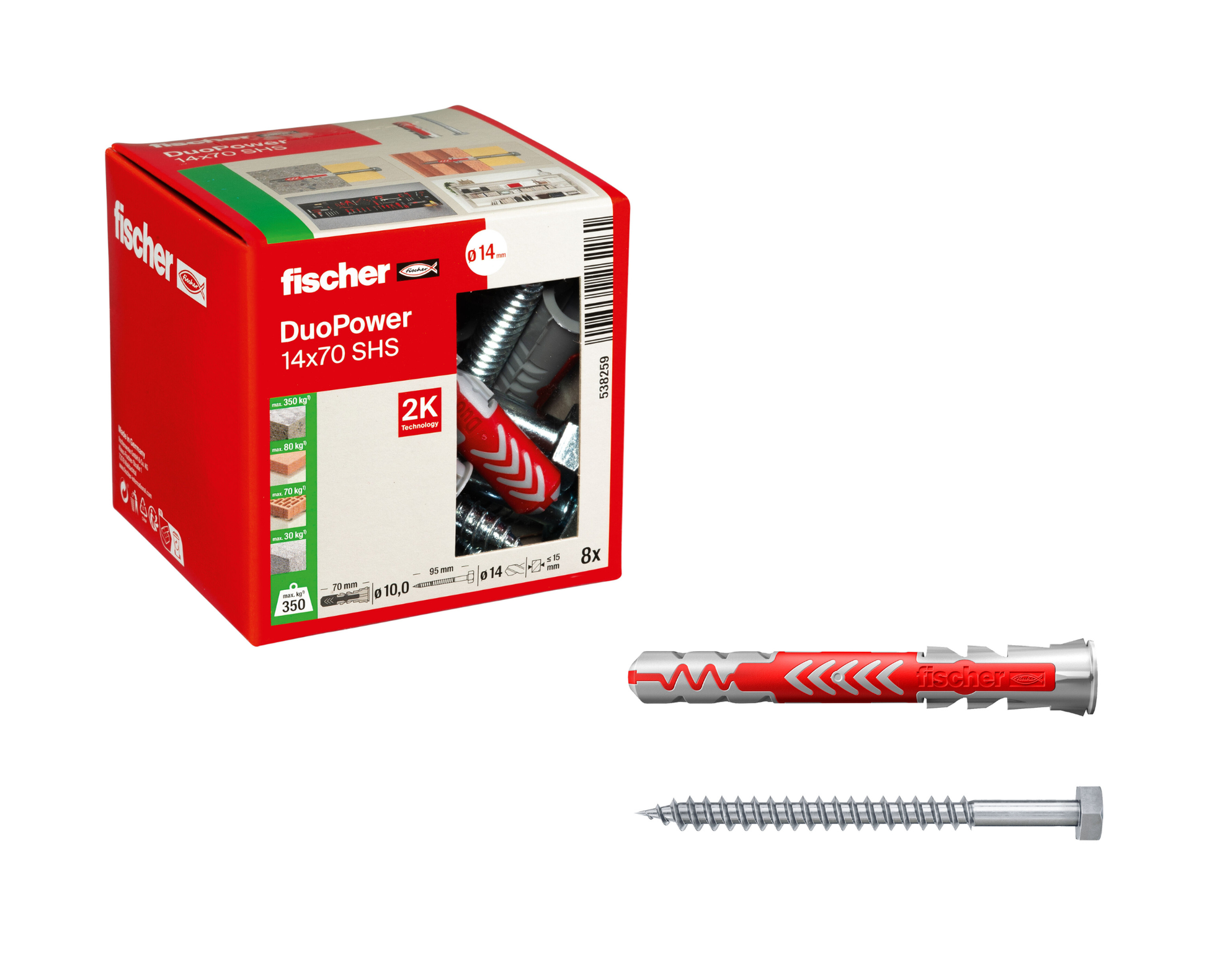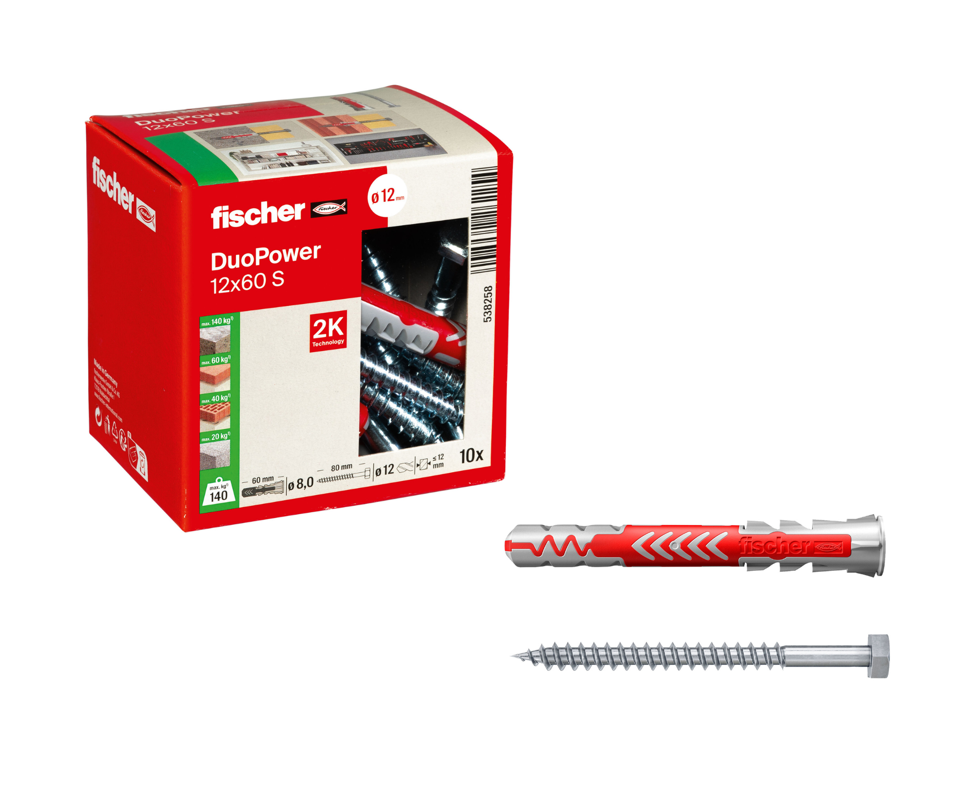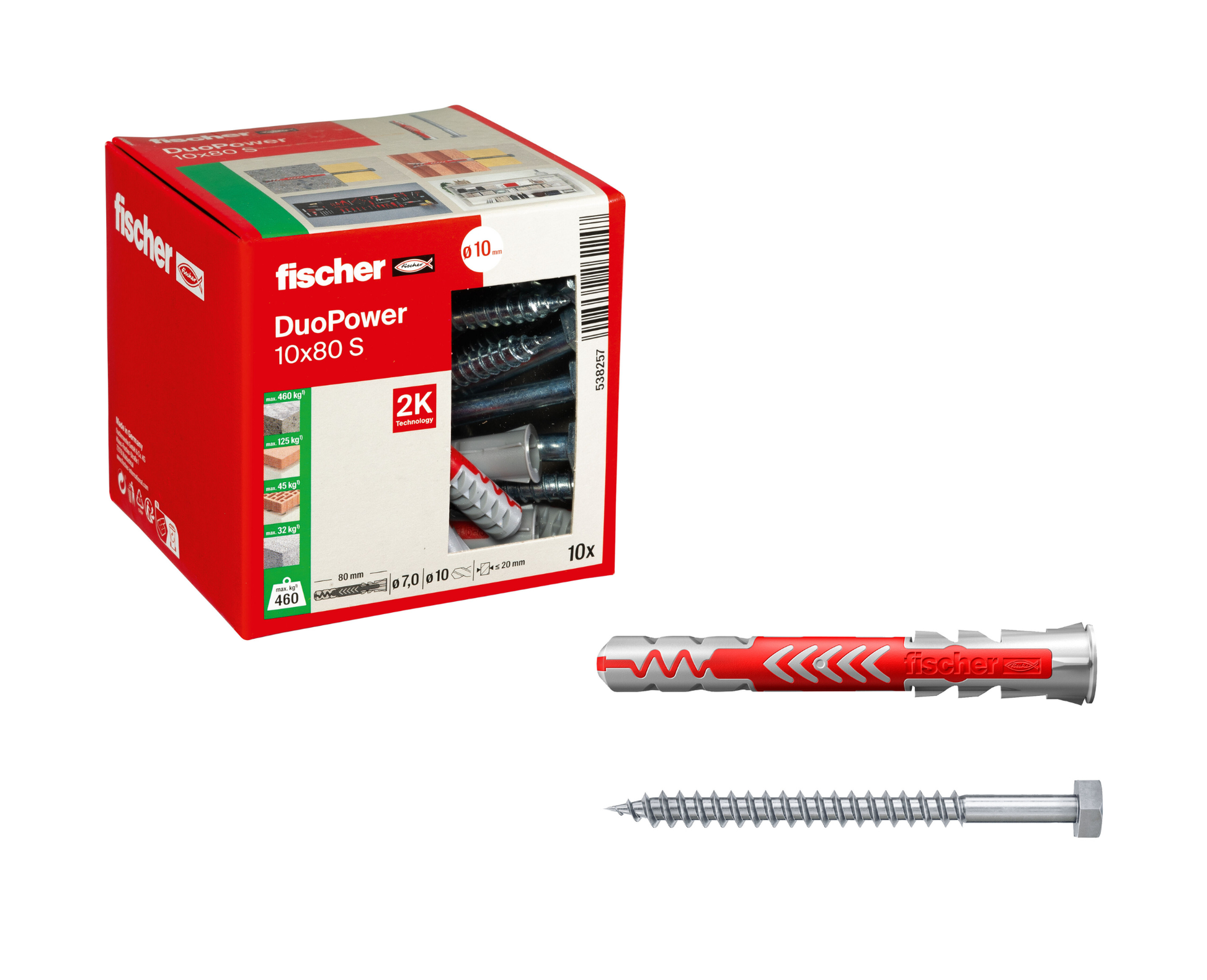 fischer DuoPower S | Universaldübel mit passender Schraube je nach Größe (Senkkopf oder Sicherheitsschraube) | 2-Komponenten-Kunststoffdübel für Befestigungen in Beton, Ziegel, Naturstein, Gipskarton & mehr | alle Größen wählbar